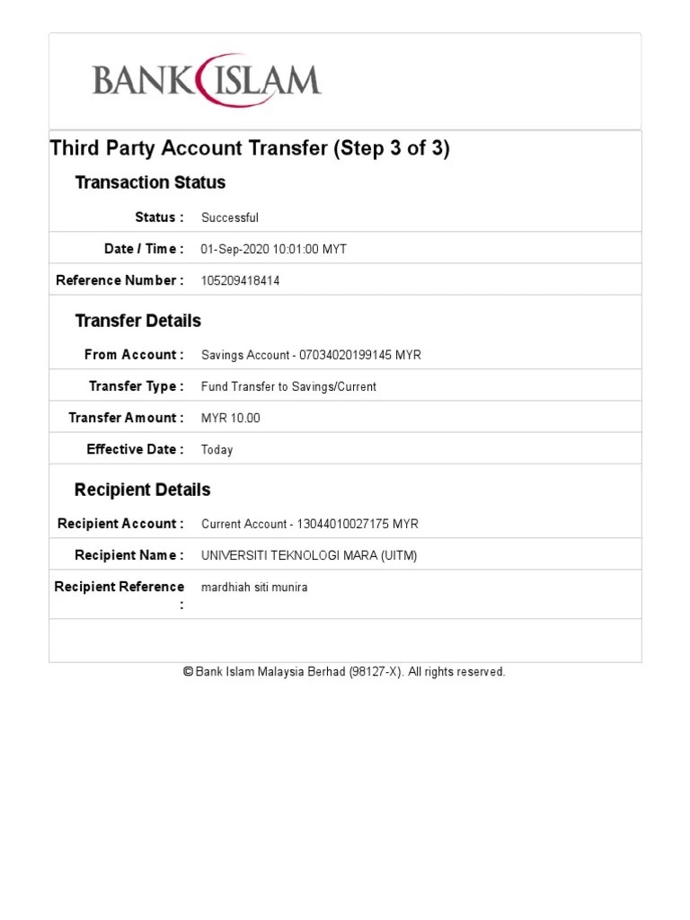 Bukti bayaran melalui perbankan internet, kaunter bank dan ejen pungutan perlu dicetak dan disimpan untuk rujukan contoh resit bayaran. Sistem ini menyediakan perkhidmatan semakan penyata dan bayaran balik pinjaman pelajaran (fpx) bagi program pinjaman dibawah kementerian pengajian tinggi.